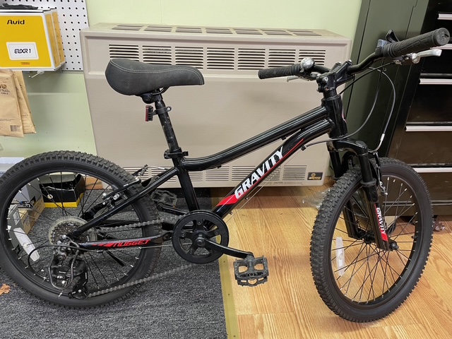 Gravity Nuggets Kids Mountain Bikes with Front Suspension for Town, Neighborhood or Trail. Made by Bikes Direct. These 20-inch Wheel Kids Bikes Fit Most 5- to 8-year-old. Single speed Front Crank and 6 Speed Rear gears.